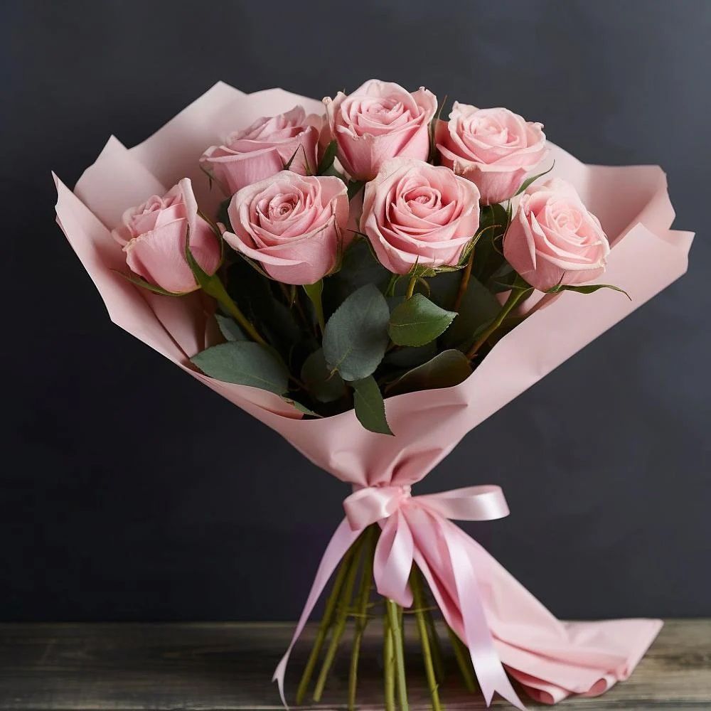 7 розовых роз