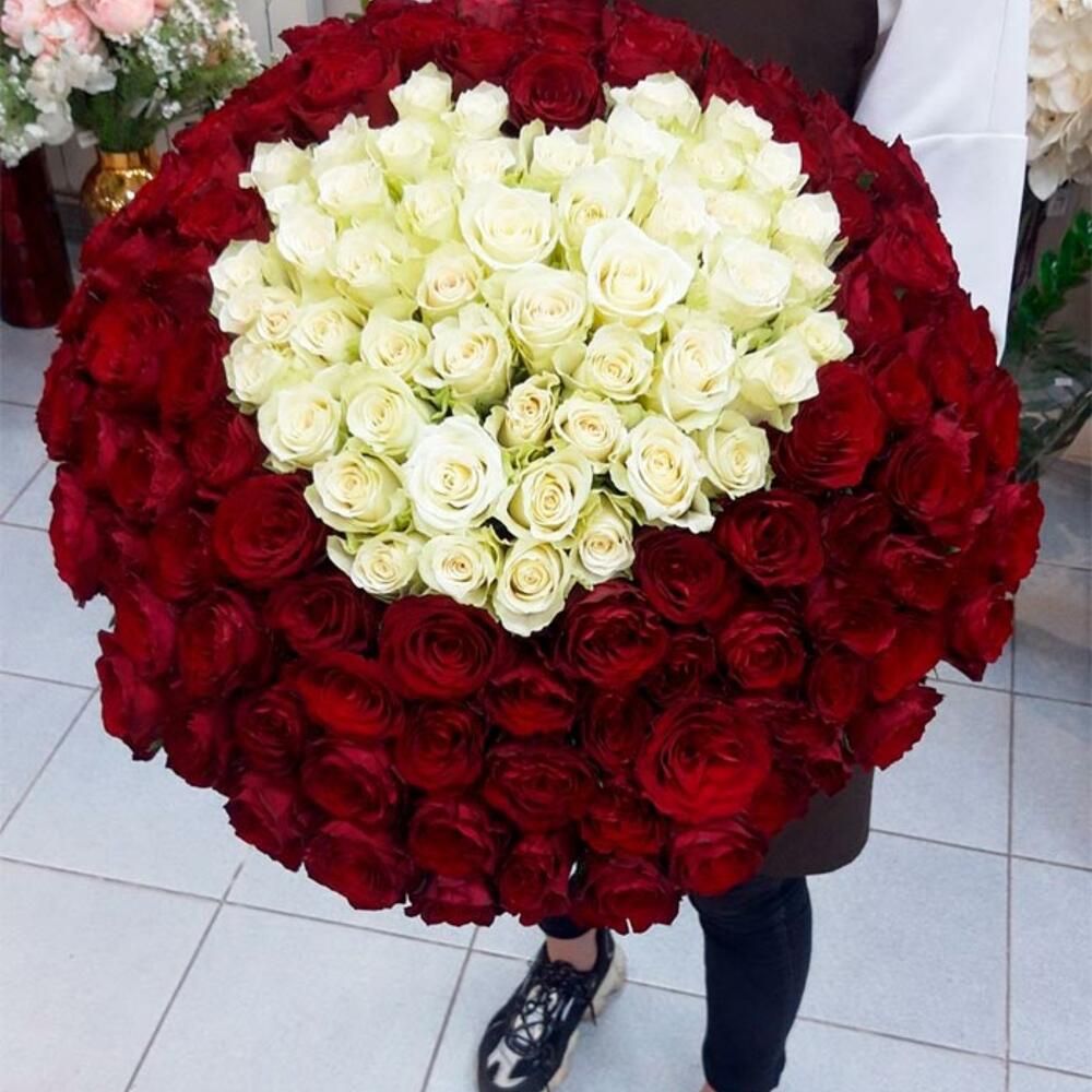 ЦветКрасные и белыеКоличество101 роза -